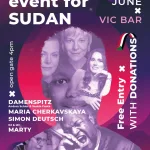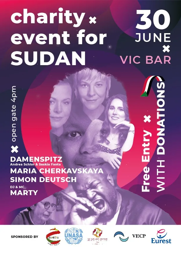 First event On 30th June under “charity Event for Sudan” at VIC bar, gate opens at 4 pm. Sponsored by ACCOS, VECP and other organisations